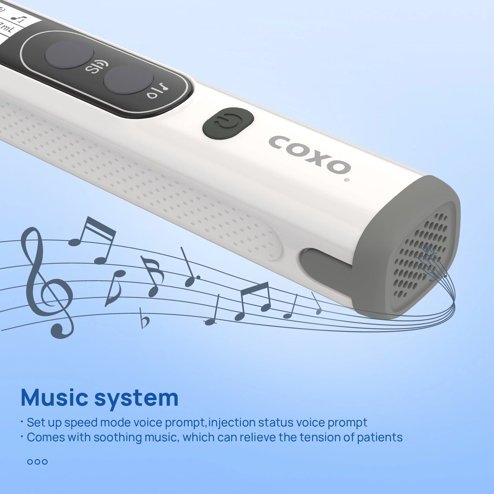 ✓ Hệ thống âm nhạc tích hợp độc đáo: Là thiết bị tiên phong tích hợp âm nhạc du dương, nhẹ nhàng, giúp bệnh nhân thư giãn, giảm bớt lo âu và căng thẳng một cách hiệu quả. Âm thanh còn hỗ trợ nhắc nhở trạng thái và tốc độ tiêm cho nha sĩ.