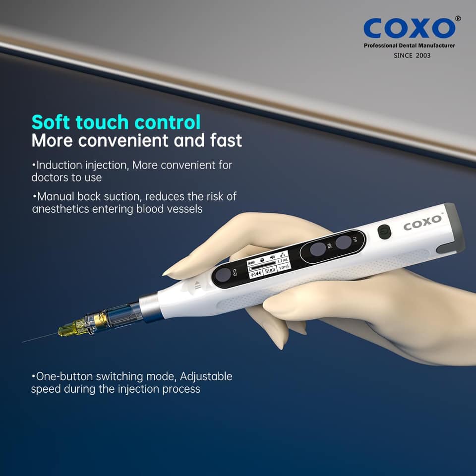 Máy gây tê nha khoa điện tử Coxo Geni là một thiết bị thông minh và hiện đại, giúp giảm đau và lo lắng cho bệnh nhân trong các quy trình nha khoa. Với công nghệ tiên tiến và thiết kế tiện dụng, Soker T-S đảm bảo quá trình gây tê hiệu quả và mang lại sự thoải mái tối đa cho cả bác sĩ và bệnh nhân.
